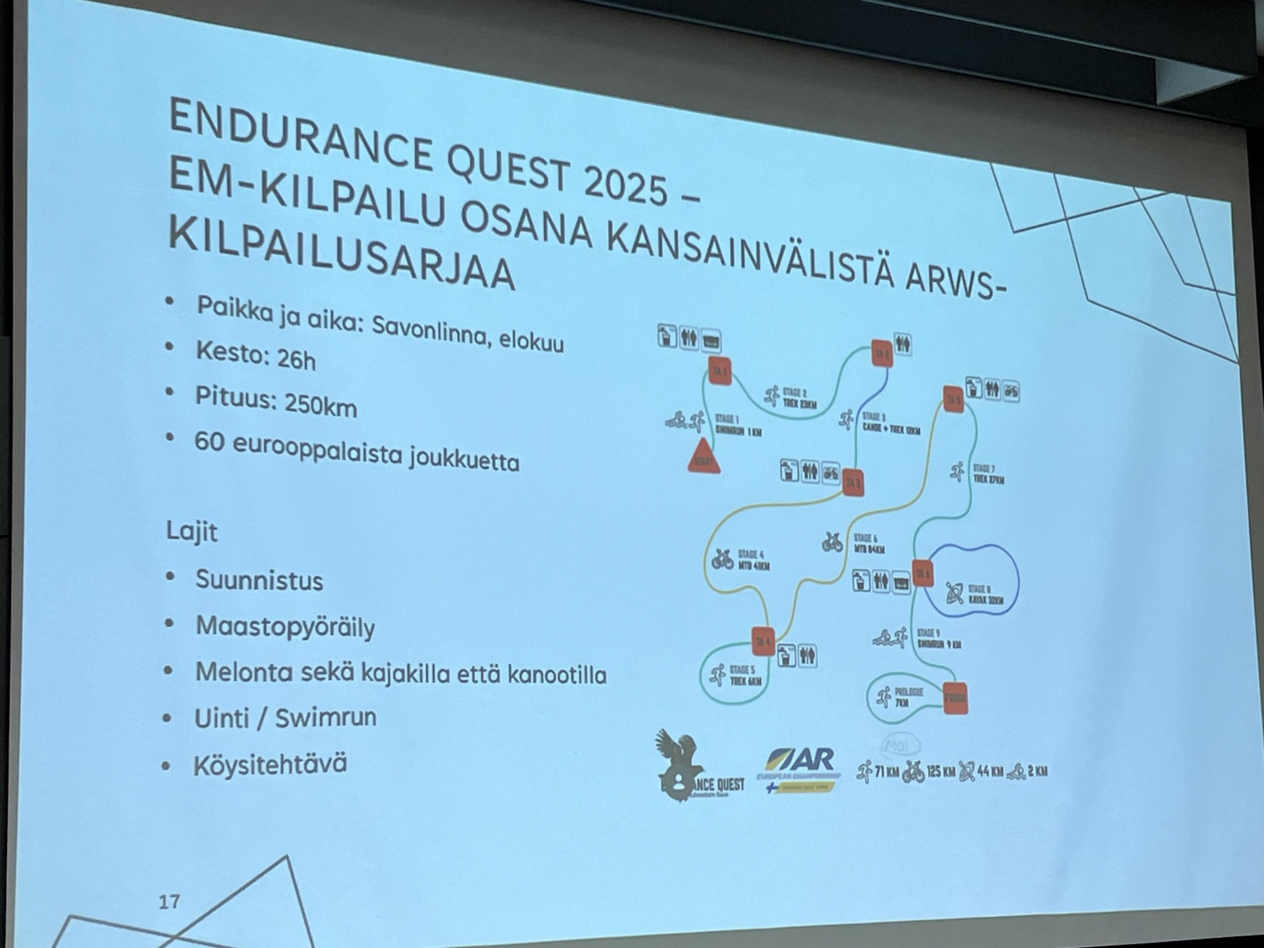 Kisareitti on aina ennalta suunniteltu, mutta kilpailijat eivät tiedä sitä etukäteen. Viime kesän Edurance Quest 2025 EM - kilpailuun Lane4 Adventure joukkue valmistautui niin huolella, että Puumalan alueeseen käytiin tutustumassa etukäteen. Kisa olikin sitten Savonlinnassa! Taskussa on nyt lippu MM-kisoihin Korsikalle.
