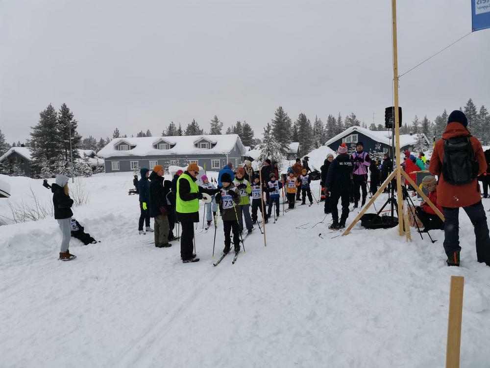 Kisatunnelman varmisti suuri joukko hiihtäjien vanhempia ja isovanhempia, osa kalkatuskellon kanssa. Latuyhtiön leventämä latu Kaltion takana oli oivassa kisakunnossa ja alamäen kurvi hiihtäjille sopiva.