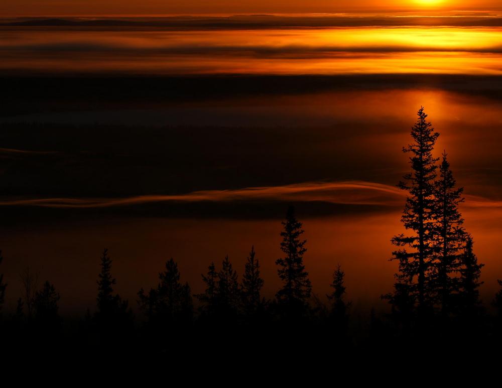 Tankkauksen kanssa marraskuun sarjassa loppusuoralle pääsivät Raimo Hyttisen Auringonnousu Ylläsjärven takaa (pystykuva alla) ja Antti Vehviläisen Pilvien päällä sekä Tulet pimeydessä.