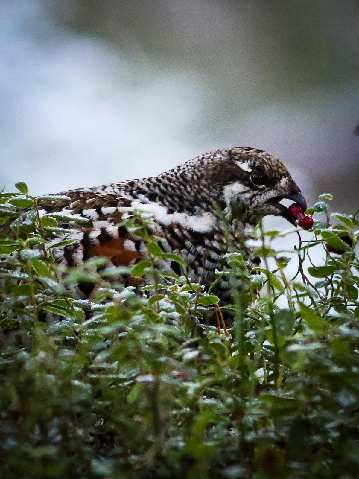 Tuomaristo kiinnitti huomiota kuvan teknisen toteutuksen taidokkuuteen, syväterävyys on hyvin toteutettu. Ylläsjärven Junkanjänkällä ravintoa tankkaavan Riekon profiili ja punaiset marjat piirtyvät kauniisti taustaa vasten, jonka epätarkkuus korostaa upeita ja hillittyjä värisävyjä.
