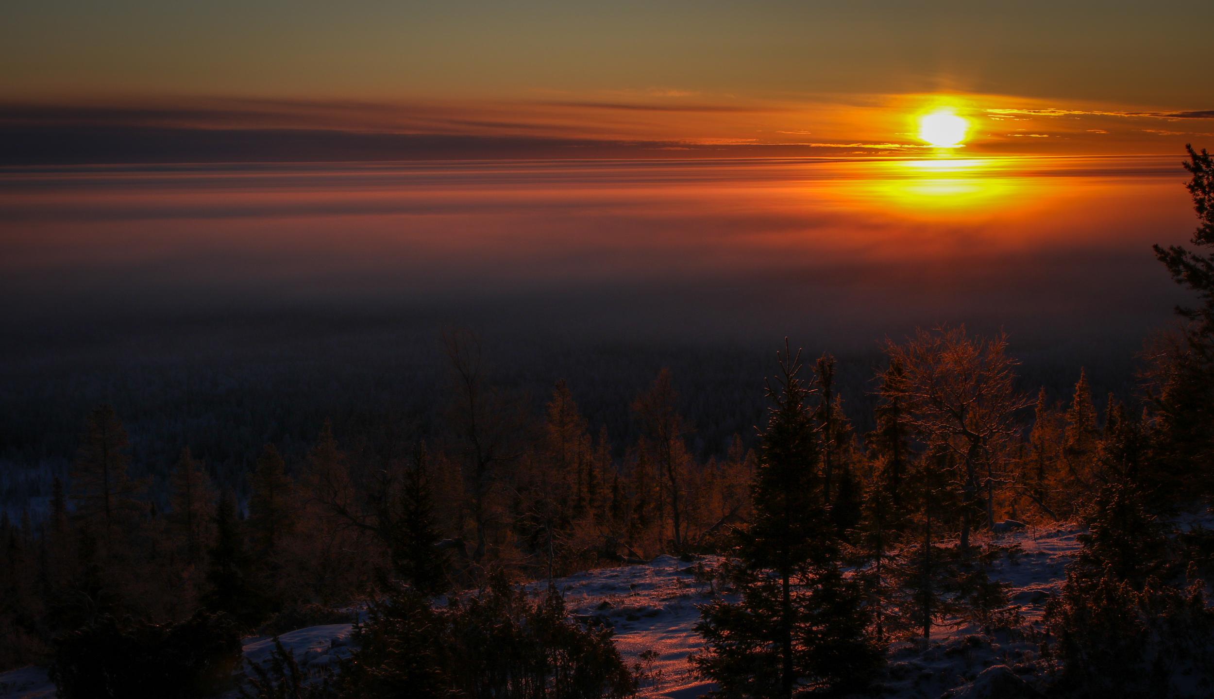 Tankkauksen kanssa marraskuun sarjassa loppusuoralle pääsivät Raimo Hyttisen Auringonnousu Ylläsjärven takaa (pystykuva alla) ja Antti Vehviläisen Pilvien päällä sekä Tulet pimeydessä.