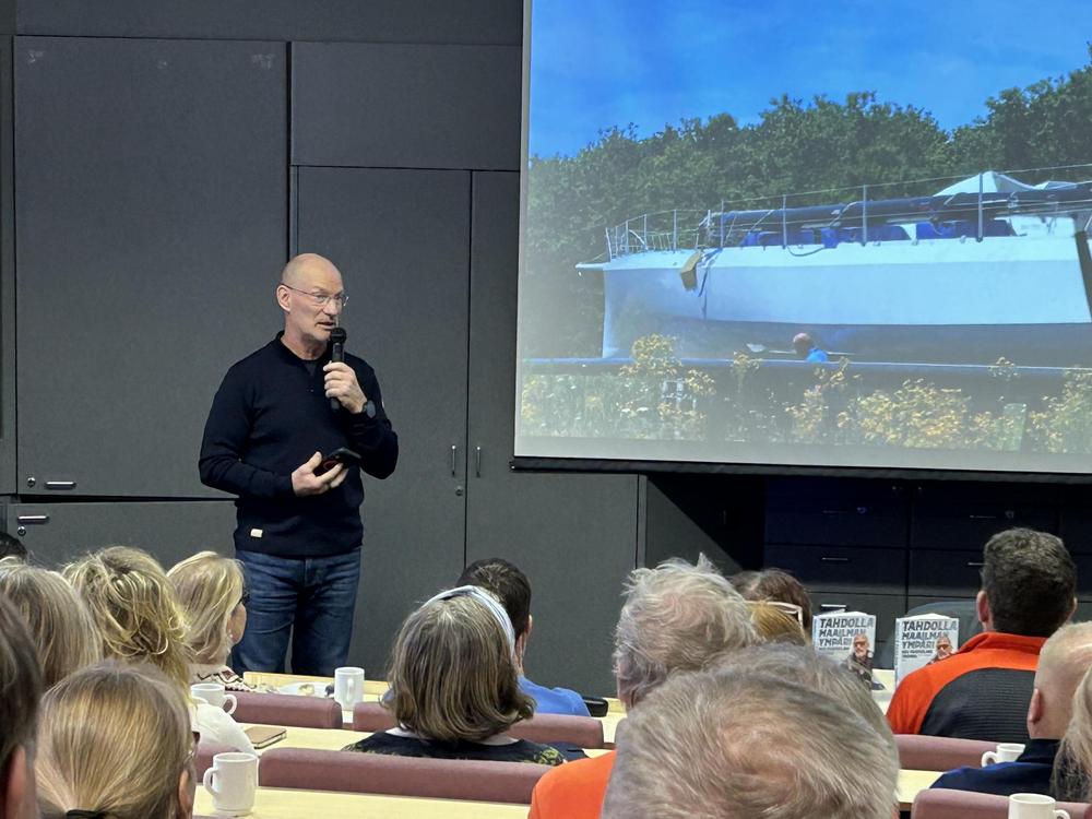 Pääsiäisen ystävätilaisuuden pääpuhuja oli yksinpurjehtijana tunnettu lentokapteeni Ari Huusela. Purjehdus ei tosin vienyt nuoren Arin sydäntä vielä silloin, kun jolla jäi vastarannalle ja kotiin piti kävellä. Palo syttyi parikymppisenä, eivätkä sitä pysäyttäneet merellä hajonneet purjeet, rahan puute tai monet viime hetkellä esiin nousseet perustavanlaatuiset tekniset ongelmat. Huusela kertoi kokemuksistaan yksin ilman pysähdyksiä purjehdittavasta Vendee Globe -kisasta, johon hän osallistui ensimmäisenä pohjoismaalaisena. Kisa alkoi koronan autioittamasta les Sables d’Olonne satamakaupungista Ranskasta marraskuussa 2020. Sinne hän myös palasi 29 000 merimailin ja 116 vuorokauden jälkeen. Toisin kuin moni kuvittelee, vaativinta oli Huuselan mukaan päästä lähtöviivalle! Suurimmat haasteet olivat rahoituksessa, joka lopulta hoitui pääosin suomalaisella talkoohengellä. Nykyään Huusela viettää suurimman osan vapaa-ajastaan Äkäslompolossa. Sinne hän lähti vain muutaman viikon kuluttua Vendee Globenkin päättymisestä.
