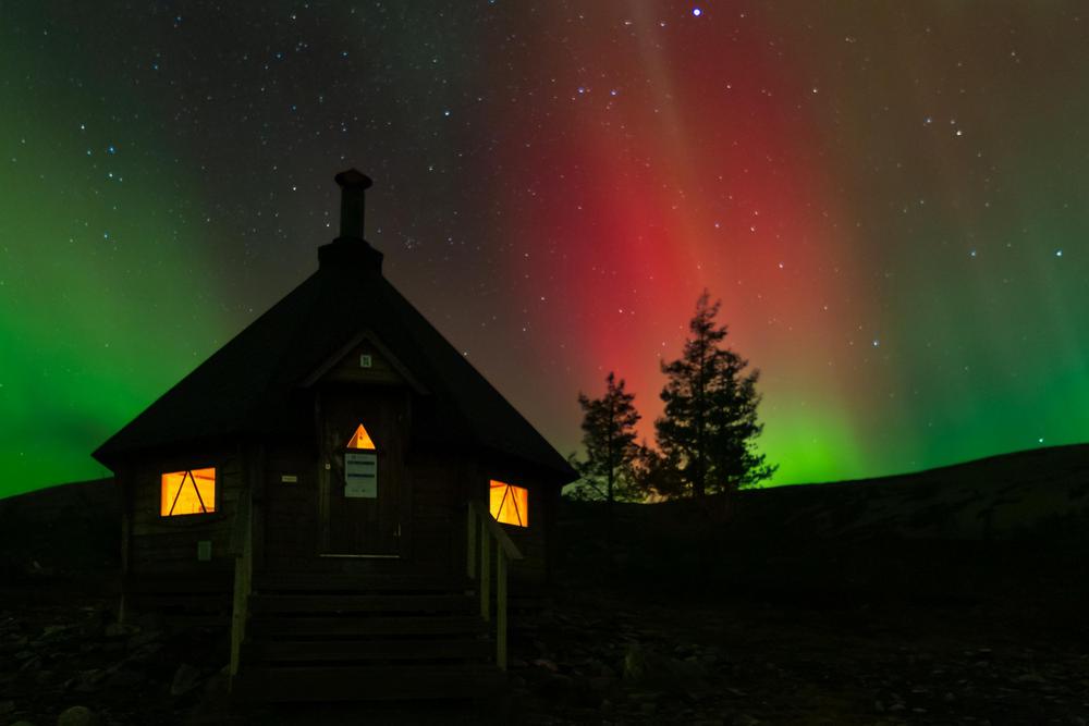 Toiseksi sijoittui Anja Degiampietron kuva Revontulten alla. Se kertoo hyvin kuluneesta syksystä: vähän lunta, paljon revontulia. Siinä on vahva silhuettimainen tunnelma, se on dramaattinen ja pysähdyttävä: juuri tämän takia tänne tullaan. Tummalla alaosalla ja vahvoilla revontulilla on voimakas vuorovaikutus keskenään. Herkkyyttä kuvaan tuo ikkunoista hehkuva kutsuva valo. Luonnon mahtavuus on tallentunut kuvaan. Kaksi puuta ovat kuin äiti ja lapsi lämpimän valon ympäröiminä.